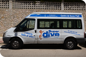 Tenemos varias furgonetas para el cómodo traslado de las personas y equipos a los puntos de inmersión. Además ofrecemos el servicio de recogida en hoteles.